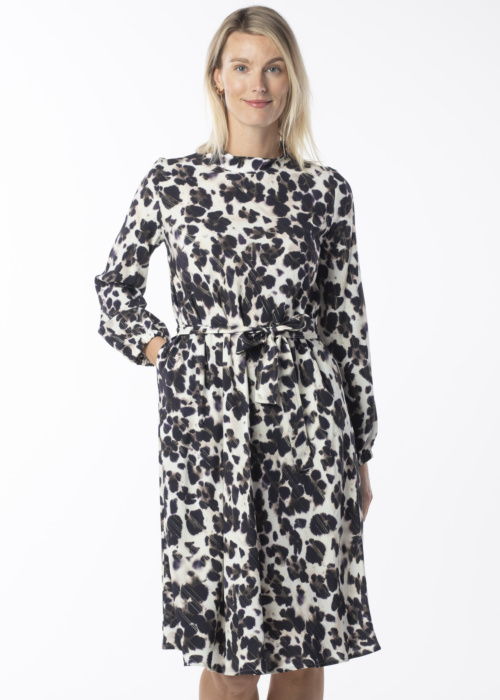 Althea moterų suknelė Triply yra puikus pasirinkimas toms, kurios ieško stilingo ir patogaus rūbo. Ši daugiaspalvė suknelė išsiskiria laisvu kirpimu, ilgomis rankovėmis ir stovinčia apykakle, suteikiančia elegancijos. Suknelė yra lengva ir žėrinti, su sagų užsegimu, rišamu diržu ir tuneline guma, kuri užtikrina patogumą dėvint. Modelio ūgis yra 177 cm, ir ji dėvi 36 dydį.