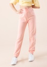 Su šiomis "Champion" sportinėmis kelnėmis jūsų vaikas jausis patogiai net ir užsiimdamas aktyviausia veikla! Medvilninis audinys yra minkštas ir patogus, liemuo turi elastingą dirželį su raišteliais, o kojos gale - elastinės juostos. Ant kairės kojos yra prekės ženklo užrašas. Modelio ūgis - 147 cm, jis dėvi L dydį. Audinys: medvilnė 58 %, poliesteris 42 %. Spalva: šviesiai rožinė.