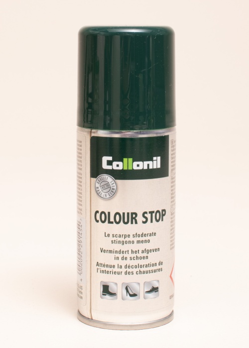 Priemonė, skirta vidinės batų dalies spalvos apsaugai. Dėl sudėtyje esančių aktyvių medžiagų ši priemonė apsaugo pėdas, kojines ar pėdkelnes nuo nudažymo. Naudojimas: prieš naudojimą pakuotę pakratykite; tolygiai apipurškite vidinę avalynės dalį ir leiskite jai išdžiūti. Preliminarus džiūvimo laikas – nuo 20 iki 30 minučių. Norint pasiekti geriausius rezultatus, priemonę rekomenduojame naudoti kelis kartus. DĖMESIO: dirgina odą. Labai degus aerozolis. Slėginė talpykla: gali sprogti, jei bus kaitinama. Laikyti atokiau nuo karščio, karštų paviršių, kibirkščių, atviros liepsnos ir kitų degių šaltinių. Prarijus ir patekus į kvėpavimo takus gali būti mirtinas. Gali sukelti mieguistumą arba galvos svaigimą. Naudoti vėdinamoje patalpoje. Įkvėpus ar sudirgus odai nedelsiant kreipkitės į gydytoją. Jei reikalinga gydytojo konsultacija, turėkite produkto pakuotę arba etiketę.