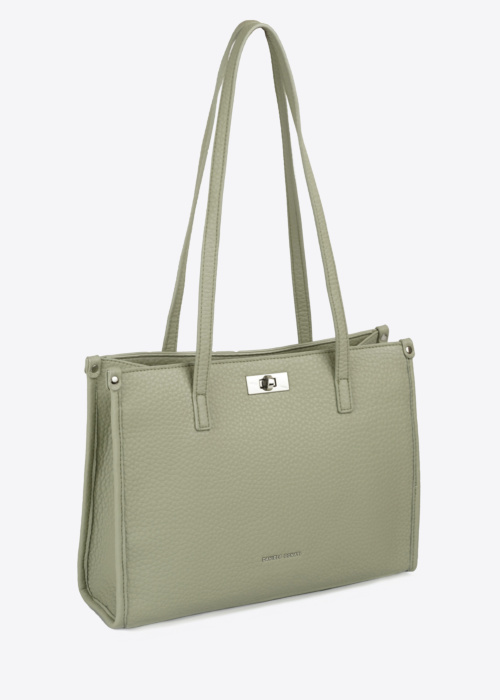 Daniele Donati moteriška rankinė yra elegantiškas ir talpus aksesuaras, puikiai tinkantis kasdieniam naudojimui. Rankinė turi guminį skydą, kuris suteikia papildomą apsaugą ir išskirtinį dizainą. Viduje rasite kišenę su magnetiniu užsegimu bei atviras kišenes, kurios padės patogiai susidėti smulkmenas.