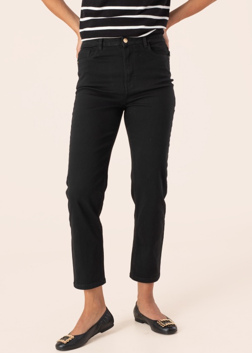 Šios Diverse moteriškos kelnės Slinta yra praktiškos ir patogios kasdieniam dėvėjimui. Kelnės ilgis yra 7/8, todėl jos puikiai tinka tiek šiltesniam, tiek vėsesniam orui. Aukštas juosmuo suteikia papildomą komfortą ir stilingumą, o elastinga medžiaga leidžia laisvai judėti. Kelnės turi užtrauktuką, sagą ir atviras kišenes, kas daro jas dar patogesnes. Modelio ūgis yra 177 cm ir ji dėvi dydį 36.
