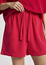 Diverse moteriški šortai yra puikus pasirinkimas nerūpestingam poilsiui, suteikiantys malonumo ir komforto jausmą. Šie šortai turi elastinę guminę juosmens juostą, kuri užtikrina patogų prigludimą, o plati klešnė leidžia laisvai judėti. Papildomai, šortai yra su rišama juosta, atviromis kišenėmis ir subtiliai siuvinėtu logotipu, suteikiančiu stilingą akcentą.