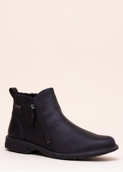 Šie prekės ženklo „Ecco“ aulinukai pagaminti iš nubuko odos bei tinkami dėvėti vėsesnėmis rudens dienomis. Batai yra segami užtrauktukais, kurie leidžia lengviau ir greičiau apsiauti batus. Minimalistinė „Gore-tex“ etiketė išorėje nurodo, kad vandenį atstumianti konstrukcija, pagrįsta šia technologija, išlaiko pėdą sausą ir taip pat užtikrina geresnį kvėpavimą. Vidinis paviršius padengtas šiltu, storo plauko tekstiliniu pamušalu. Išimamas vidpadis padengtas aukštos kokybės oda, o patogus ir minkštas padas suteikia visišką komfortą. Padas yra labai lankstus, todėl pėda gali judėti kuo natūraliau ir patogiau. 46 dydžio svoris yra 525 g. Spalva: juoda.