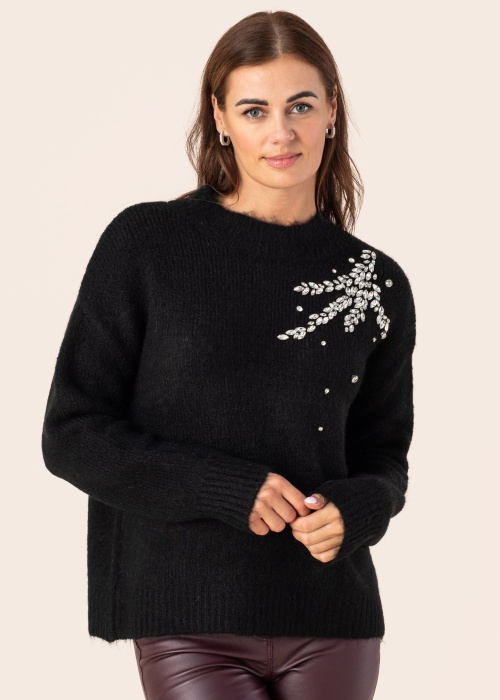 EsQualo moterų megztinis yra tikras elegancijos ir stiliaus pavyzdys. Šis gražus rūbas puikiai tinka tiek kasdienai, tiek ypatingoms progoms. Megztinis yra dekoruotas švytinčiais akmenukais, kurie suteikia jam ypatingo žavesio ir išskirtinumo. Pasirinkus šį megztinį, jausitės ne tik komfortiškai, bet ir itin stilingai.