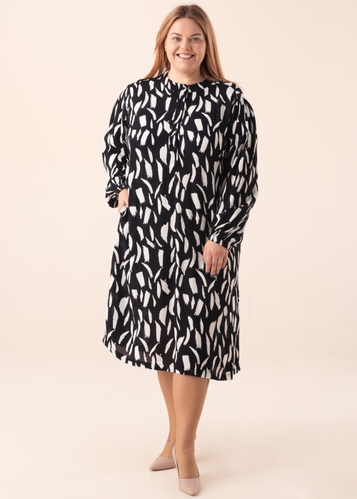 PLIUS dydžio suknelė „Geto“ – paprastas ir stilingas pasirinkimas kiekvienai dienai! Priekyje ji segama sagomis, o šonuose yra atviros kišenės. Malonus ir lengvas viskozinis audinys yra švelnus odai bei jos nedirgina. Jeigu jums patinka minimalistinis ir tvarus dizainas, ši suknelė – puikus pasirinkimas! Modelis yra 167 cm ūgio ir dėvi 46 dydį.