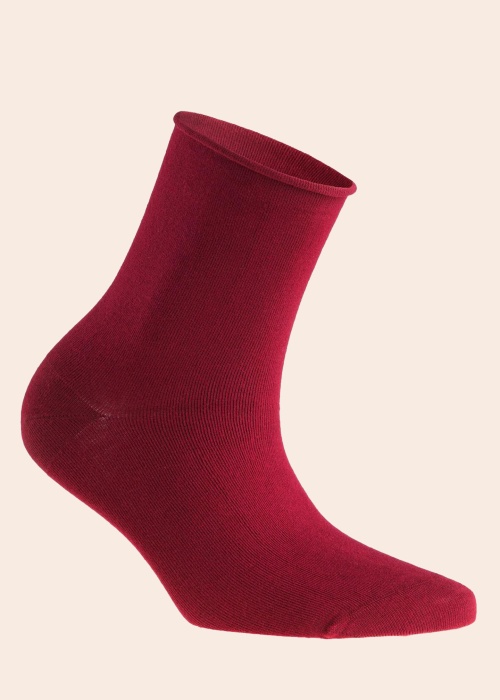 Klasikinio modelio FRIENDS kojinės yra pagamintos iš bambuko viskozės, kuri yra minkštesnė už medvilnę, pasižymi termoreguliaciniu poveikiu - lygus pluoštų paviršius sukuria vėsų pojūtį kai karštą ir šiltą pojūtį šaltyje. Medžiaga: bambuko viskozė 75%, nailonas 22%, Lycra elastanas 3%. Spalva: tamsiai raudona.
