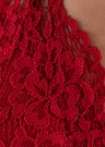 Su šia prekės ženklo „Guess“ glaustinuke kiekviena mergina dar labiau savimi pasitikės! Krūtinės dalis pasiūta iš nėrinių ir neturi paminkštinimų, nėriniai puošia ir kelnaičių dalį. Plonos petnešėlės prie nugaroje esančių tamprių juostelių pritvirtintos auksinio atspalvio žiedais. Glaustinukė pasiūta iš švelnaus ir elastingo dirbtinio šilko, kuris maloniai priglunda prie kūno ir nedirgina odos. Nugarą puošia metalinis „Guess“ logotipas. Modelio nuotraukoje ūgis yra 176 cm ir dėvi S dydį. Audinio sudėtis: poliesteris 90, spandeksas / elastanas 10 %. Spalva: raudona.