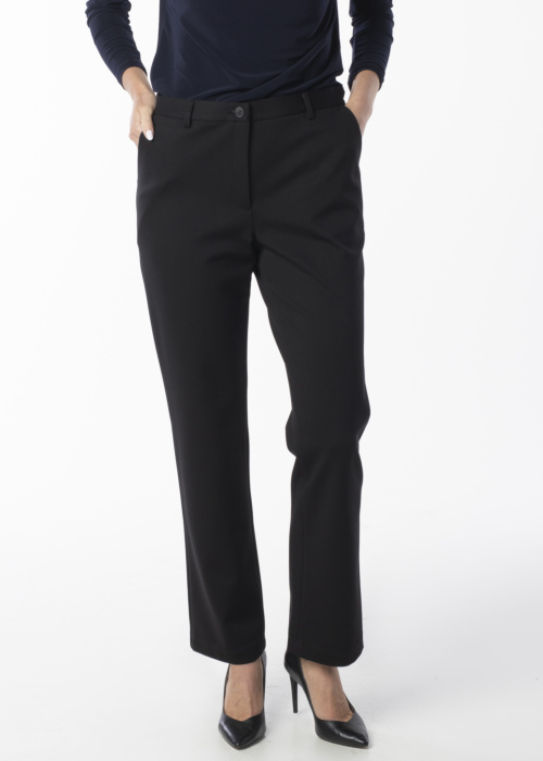 Hansmark moteriškos kelnės Bree yra klasikinio dizaino, kuris suteikia solidumo ir elegancijos įspūdį. Šios kelnės puikiai priglunda prie kūno, yra tamprios ir patogios dėvėti, o šonuose esančios kišenės prideda praktiškumo. Diržas su sagtimi ir užtrauktuku užtikrina patogų ir saugų užsegimą. Modelio ūgis yra 177 cm ir ji dėvi 38 dydį.