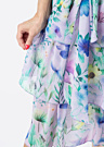 Hansmark moterų suknelė Paila yra laisvo kirpimo ir įspūdinga, puikiai tinkanti išsiskirti iš minios. Suknelė pasižymi gražiu gėlėtu raštu ir permatoma medžiaga, kuri suteikia elegancijos ir lengvumo pojūtį. Rišama juosta ir kengūros kišenė suteikia papildomo žavesio. Modelio ūgis yra 178 cm, ir ji dėvi 36 dydį.