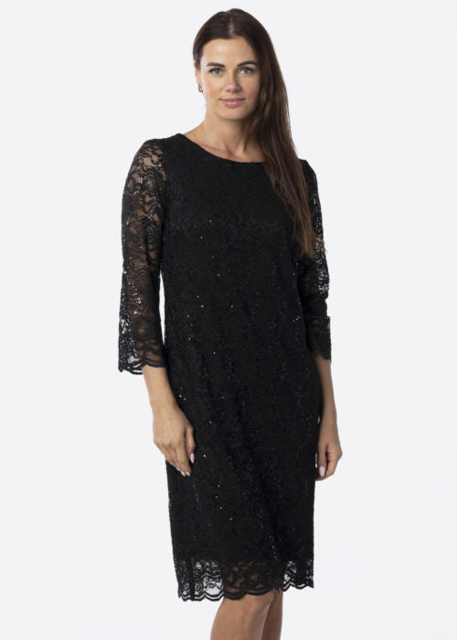 Hansmark moterų suknelė Pärle yra puikus pasirinkimas ypatingoms progoms. Ji pasižymi elegantišku dizainu, kuris pabrėžia figūrą dėl aptempto juosmens. Elastinga medžiaga užtikrina, kad suknelė būtų patogi dėvėti. Nėriniuotas dizainas su blizgančiais akcentais suteikia papildomo žavesio ir elegancijos. Modelio ūgis yra 176 cm, o ji dėvi 38 dydį.