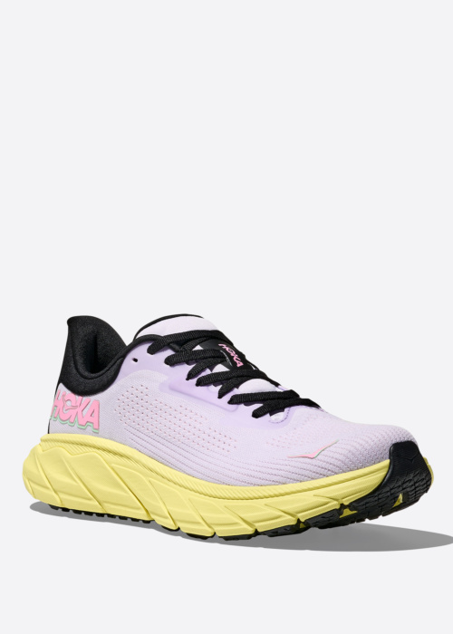 Hoka moteriški bėgimo bateliai Arahi 7 yra modernūs ir puikiai dera prie įvairios sportinės aprangos. Šie bateliai ne tik atrodo stilingai, bet ir yra lengvi, todėl juos avint jausitės lyg vaikščiotumėte ant debesų. Patogumas ir kvėpuojanti medžiaga užtikrina komfortą net ir intensyviai judant. Bateliai turi raištelius ir guminį padą, kurie suteikia papildomą stabilumą ir apsaugą. Dydžio 40 bateliai sveria 214 gramų.