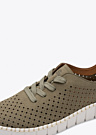 Šie jaunatviški moteriški laisvalaikio bateliai yra vienspalviai, todėl juos lengva priderinti prie įvairios kasdienės aprangos. Jie lengvi, tad net ir daugiau vaikštant kojos mažiau pavargsta. Viduje esantis minkštas, smūgius sugeriantis vidpadis suteikia daugiau komforto kiekviename žingsnyje. Šone subtiliai matomas prekės ženklo logotipas, o raišteliai leidžia batelius patogiai suveržti pagal pėdą. Perforuotas paviršius padeda geriau cirkuliuoti orui, todėl visą dieną išlieka malonus gaivumo pojūtis.