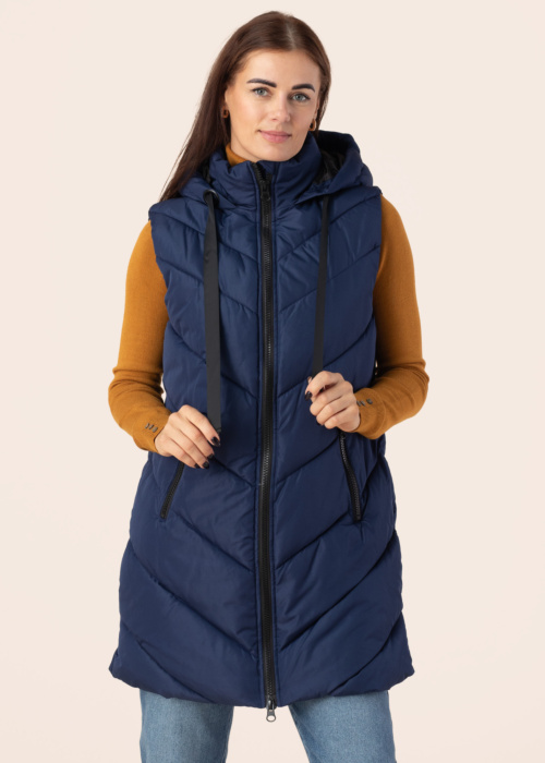 JDY moteriška liemenė Skylar yra puikus pasirinkimas stilingoms moterims, ieškančioms praktiško ir madingo rūbo. Šis dygsniuotas modelis suteikia papildomos šilumos ir komforto, todėl puikiai tinka vėsesniems orams. Liemenė turi patogų gobtuvą, kuris apsaugos nuo vėjo ir lietaus. Ilgesnis modelis suteikia papildomos apsaugos ir stiliaus, puikiai derinant su įvairiais drabužiais. Modelio ūgis yra 176 cm ir ji dėvi dydį S.