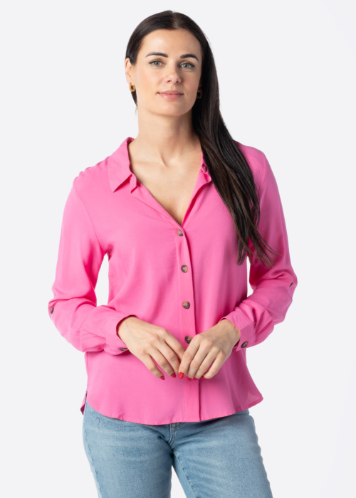 JDY moteriška palaidinė „Laurel Life“ su V formos iškirpte yra lengva ir pralaidi orui, todėl puikiai tinka kasdienai. Nugaros dalis kiek ilgesnė, tad palaidinė gražiai krenta ir nevaržo judesių. Ji užsegama sagomis, o audinys pagamintas iš „LENZING ECOVERO“ pluošto, kuris išgaunamas iš sertifikuotų, atsinaujinančių medienos šaltinių. Gamybos procesas paremtas tvaresniais sprendimais ir atitinka griežtus aplinkosaugos reikalavimus.