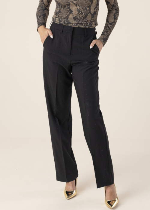 JJXX moteriškos kostiuminės kelnės Lora yra puikus pasirinkimas toms, kurios ieško klasikinio stiliaus. Šios vienspalvės kelnės pasižymi elegantišku dizainu ir subtiliu švytinčio akmenuko akcentu, suteikiančiu joms išskirtinumo. Modelis yra 176 cm ūgio ir dėvi S dydį.