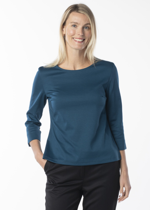 Kairi Vilderson moteriška palaidinė yra klasikinio stiliaus ir puikiai tinka įvairioms progoms. Ji turi trijų ketvirčių ilgio rankoves ir apvalią apykaklę, kurios suteikia elegancijos ir subtilumo. Minkštas audinys ir įdomus dizainas su skeltuku užtikrina komfortą ir išskirtinumą. Modelio ūgis yra 177 cm, o ji dėvi 38 dydį.