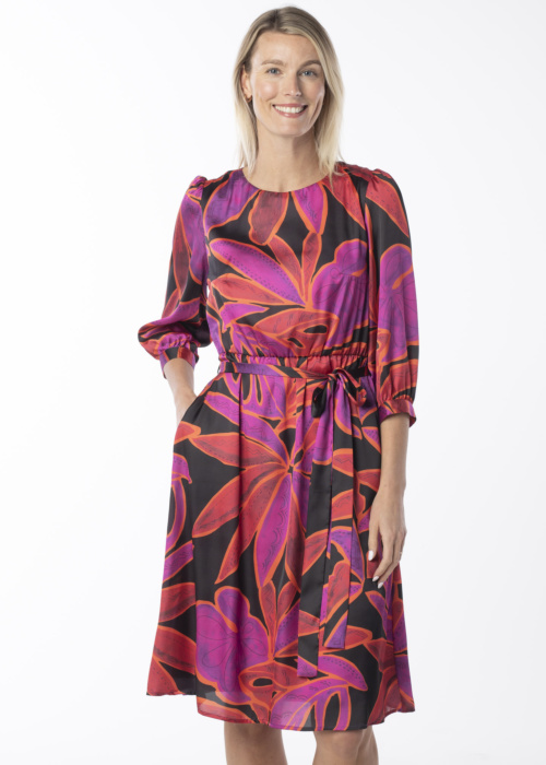 Kairi Vilderson moteriška suknelė yra puikus pasirinkimas šventėms. Ji pasižymi apvalia apykakle ir trijų ketvirčių rankovėmis, kurios suteikia elegancijos. Suknelė yra puikiai krentanti, pagaminta iš šilkinės medžiagos, turi kišenes šonuose ir užsegama sagomis. Rišamas diržas pabrėžia liemenį, suteikdamas dar daugiau žavesio. Modelio ūgis yra 177 cm ir ji dėvi 38 dydį.