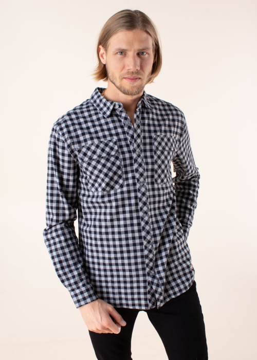 Prekės ženklo „Luhta“ marškiniai „Karvio“ žavi savo nesenstančiu retro stiliumi ir minkštumu! Marškiniai turi klasikinę apykaklę, užsegamus rankogalius ir priekyje segami sagų eilute. Priekį puošia dvi užsegamos kišenės ant krūtinės. Medvilninis audinys puikiai kvėpuoja ir nesukelia diskomforto. Languotą marškinių raštą dar labiau sustiprina pilkos spalvos metalinės sagos. Modelis yra 193 cm ūgio ir vilki 52 dydį. Audinio sudėtis: 100% medvilnė.