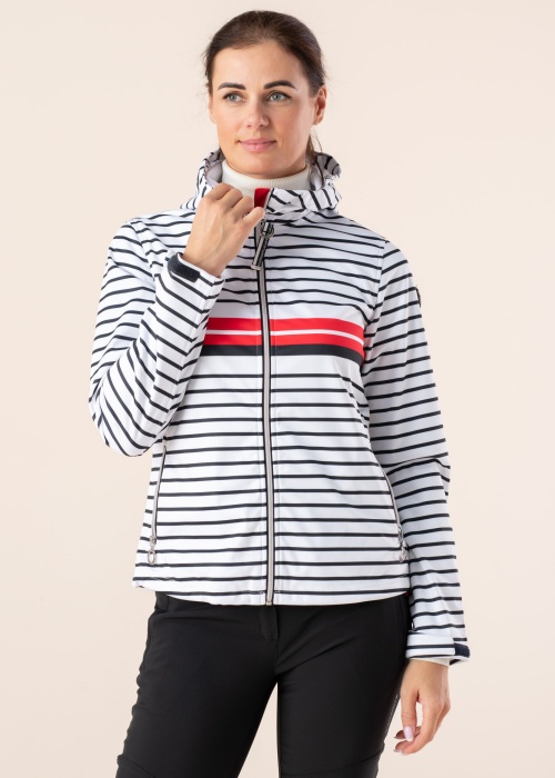 „ Luhta “ pavasario-rudens striukė „ Isokurikka “ puikiai tinkama dėvėti vėsesniu oru. Naudojant „A.W.S Active“ technologiją ypatingas dėmesys buvo skiriamas funkcionalumui ir patogumui, todėl šios linijos produktai tinkami aktyvesnei veiklai bei kasdieniam dėvėjimui. Striukė yra pagaminta iš vandenį atstumiančio ir kvėpuojančio 5000 mm / 5000g / m2 / 24h audinio, kuris užtikrina komfortą esant net šiltesniam ir drėgnesniam orui. „Softshell“ audinys jus puikiai apsaugos nuo vėjo ir lietaus. Striukės priekį galima užsegti užtrauktuku, aukštesnė apykaklė ir jaukus gaubtas apsaugos nuo šalto vėjo. Šonuose yra dvi užsegamos kišenės, kuriose patogu laikyti svarbius daiktus. Rankogalių apimtį galima sureguliuoti. Vidinis audinys yra maloniai minkštas ir užtikrina tikrą nešiojimo komfortą. Modelis yra 176 cm ūgio ir dėvi 36 dydį. bendras rūbo ilgis yra 63cm. Medžiaga: 100% poliesteris. Spalva: balta / raudona / tamsiai mėlyna / raštuota