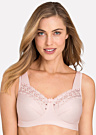 Miss Mary of Sweden moteriška liemenėlė Broderie Anglaise yra patogus ir elegantiškas pasirinkimas. Ji pagaminta iš storesnio audinio, kuris suteikia tiek dinamiškumo, tiek minkštumo jausmą. Ši liemenėlė, papuošta subtiliomis nėrinių detalėmis, turi minkštas krūtų pagalvėles, kurios užtikrina malonų prisilietimą ir patikimą prilaikymą. Tai puikus pasirinkimas, kuris tavęs nepaves.
