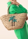 „Molly Bracken“ iš rotango šiaudų pinta rankinė – erdvus ir stilingas aksesuaras vasaros iškyloms ar kelionėms į paplūdimį. Rankinės priekis papuoštas spalvotomis palmėmis, o viršus surišamas kaspinėliu. Viduje įsiūtas tekstilinis apmušalas, o vienoje vidinėje pusėje yra užtrauktuku užsegama kišenė. Matmenys: aukštis 30 cm, plotis 50 cm, dugno plotis 20 cm. Spalva: smėlio spalva.