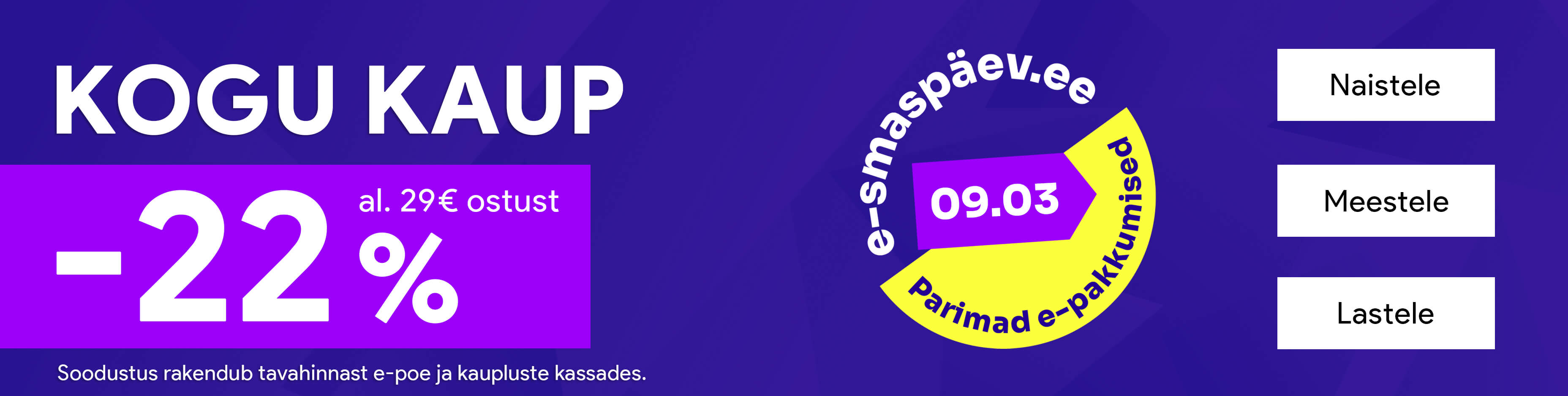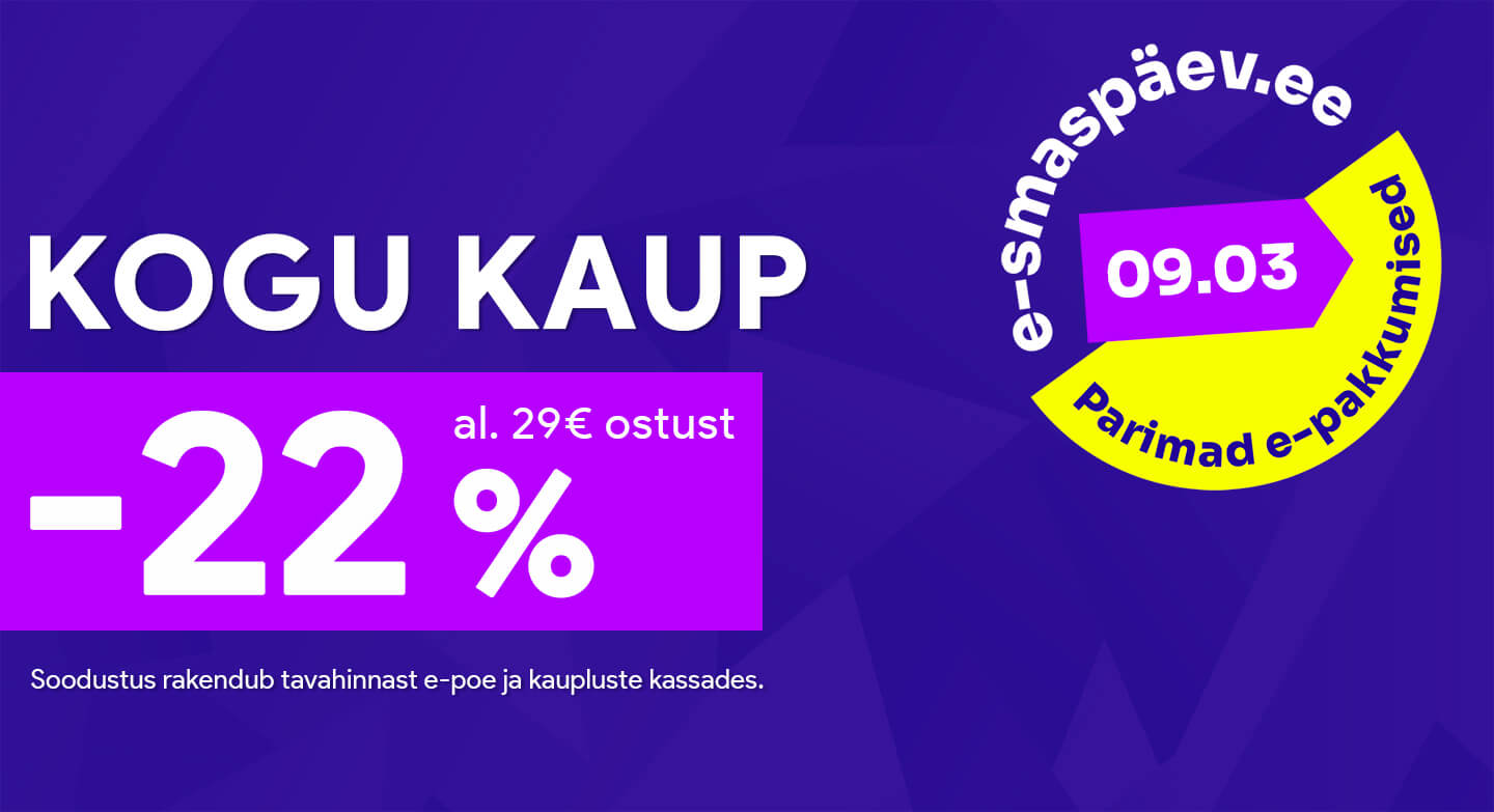 Osta rohkem, maksa vähem! Täna KOGU KAUP -20% al 99€ ostust, -15% al 69€ ostust!