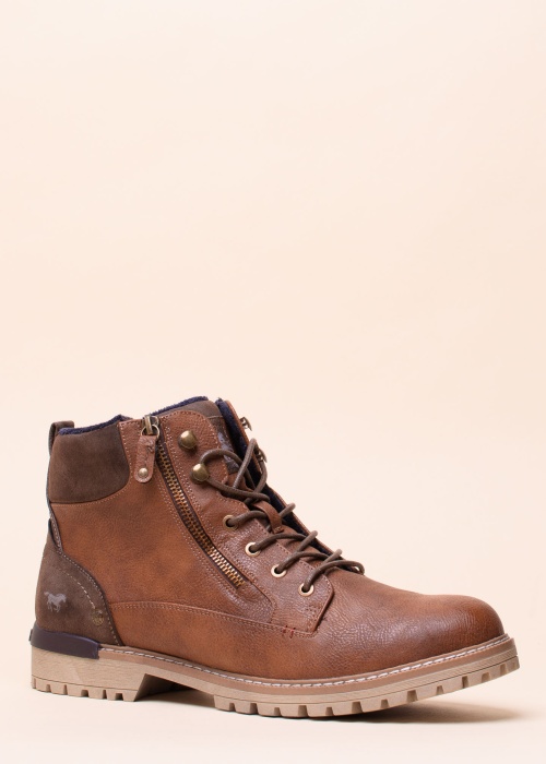 Stilingai atrodantys „Mustang“ aulinukai puikiai tinka kasdieniam nešiojimui. Suvarstomas ir raišteliais rišamas batviršis papuoštas dekoratyviniu užsegimu priekyje, o vidinėje pusėje turi funkcionalų užtrauktuką. Atsegus šį užtrauktuką koją į batą įkelti lengva, patogu ir kaskart aunantis nereikia rišti raištelių. Tekstilinis pamušalas dengia ir vidinį paviršių, ir vidpadį. Guminis padas yra patvarus bei patikimai priglunda prie įvairių paviršių.