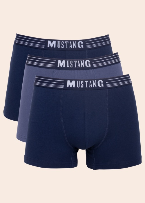 „Mustang” trumpikės pasiūtos iš minkšto ir švelniai elastingo medvilninio audinio, kuris patogiai priglunda prie kūno ir nedirgina odos. Pakuotėje yra trys BOXER stiliaus trumpikės. Jos supakuotos gražioje dėžutėje, todėl kuo puikiausiai tinka dovanoti. Sudėtis: 95% medvilnė, 5% elastanas. Spalva: juoda. Spalva: mėlyna.