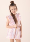 "Name It Divane" lengvas kombinezonas, tinkantis net karščiausiai ir aktyviausiai vasarai! Viršutinė dalis priekyje ir nugaroje paryškinta nuostabiais raukiniais, o viduryje ir nugaroje esanti elastinga guma padeda sukurti kostiumėliui būdingą formą. Atvira nugara sukuria itin vasarišką įspūdį. Modelis yra 117 cm ūgio ir dėvi 116 dydžio drabužius.