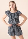 Su šiuo „Name It Vinaya“ kombinezonu džiaugsmingai pasitiksite šiltą vasarą! Gražus tropinis drabužio raštas akimirksniu sukuria jausmą, kad laikas mėgautis atostogomis ir neribota vasaros laisve! Iš lengvo audinio pasiūtas kostiumėlis turi vasarišką laivelio formos iškirptę su raukinukais ir elastingą liemenį. Lengvas ir erdvus audinys patogus ir malonus dėvėti. Modelis yra 147 cm ūgio ir dėvi 146 dydį. Medžiaga: perdirbtas poliesteris 58%, poliesteris 40%, elastanas 2%. Spalva: tamsiai mėlyna.