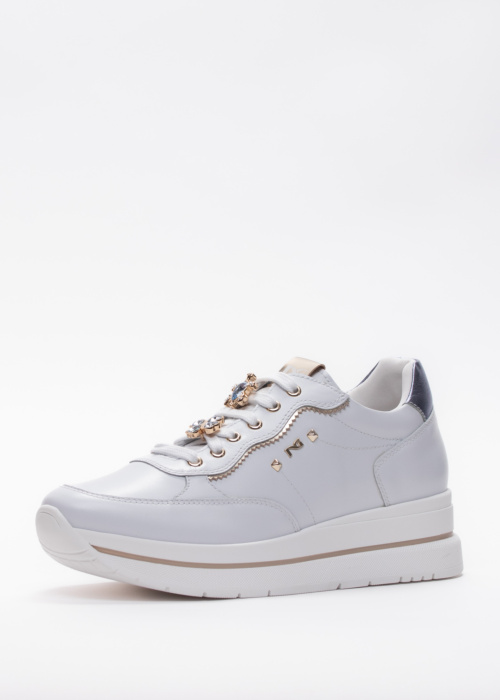NeroGiardini moteriški laisvalaikio bateliai yra puikus pasirinkimas toms, kurios vertina patogumą ir praktiškumą kasdienėje veikloje. Šie sportiški bateliai pasižymi minimalistiniu dizainu, kuris lengvai derinamas su įvairiais aprangos stiliais. Jie yra pritaikyti aktyviam kasdieniam gyvenimui, užtikrinant komfortą ir ilgaamžiškumą, todėl taps nepakeičiamu jūsų garderobo elementu. Prekės ženklo logotipas subtiliai įkomponuotas į rišamą juostą, suteikdamas bateliams išskirtinumo ir elegancijos. Grožio detalės ir dekoratyviniai elementai papildo bendrą dizainą, suteikdami bateliams unikalumo ir žavesio.
