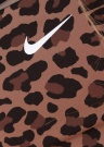 Madinga „Nike“ sportinė liemenėlė pasiūta iš vidutinio tvirtumo dvigubo audinio ir priekyje dekoruota leopardo raštu. Plačios petnešėlės nugaroje susikerta ir suteikia krūtinei patogų prilaikymą. Apatiniame krašte yra elastinga guma, kuri tvirtai priglunda prie kūno. Liemenėlė pažymėta ženklu „Move To Zero“. Šis ženklas nurodo, jog liemenėlė pagaminta iš daugiau kaip 75% perdirbtų pluoštų. Modelis yra 174 cm ūgio ir dėvi S dydį.