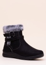 Ypatingai lengvi, lankstūs, minkšti ir patogūs Norway Originals gamintojo, pavasario-rudens sezono aulinukai. Paviršius pagamintas iš tekstilės. Akcento suteikia kontrastingos siūlės bei puošnus kailiukas, puošiantis avalynės viršutinį kraštą. Apjuosti dailiu dirželiu su sagtimi. Patogus, vidinėje pusėje esantis užtrauktukas. Viduje - trumpo plauko, plonas tekstilinis pamušalas ir vidpadis, padengtas dirbtine oda. Lengvas ir lankstus padas, pagamintas iš sintetinės gumos. 39 dydžio batų svoris 297 g. Spalva: juoda