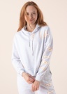 Džemperis „Eddy“ tinkamas dėvėti kasdien. Laisvo dizaino džemperis papuoštas gražiais užrašais ir suteikia rūbui gražų akcentą. Medžiagos elastingumas leidžia patogiai ir nevaržomai jaustis. Modelis yra 174 cm ūgio ir dėvi S dydį.
