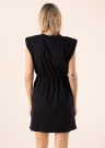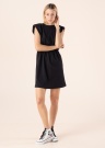 Paprasta, gražaus dizaino „Only“ suknelė „Jen“ su išskirtinėmis kvadratinės formos rankovėmis, kurių formą palaiko viduje esantys petukai. Juosmuo su plona guma, todėl vilkint puikiai priglunda prie liemens. Šią suknelę patogu dėvėti vasarą su bateliais ar lengvais sportinio stiliaus batais. Modelis yra 177 cm ūgio, dėvi S dydį. Šio dydžio drabužio ilgis yra 85 cm. Medžiaga: 100% ekologiška medvilnė.