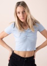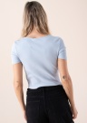 Prekės ženklo „Pieces“ palaidinė trumpomis rankovėmis „Taya“ yra paprastas ir madingas drabužis, skirtas šiltam vasaros sezonui. Krūtinę viduryje gražiai suformuoja vertikaliai ją suraukianti siūlė. Elastingas audinys gerai priglunda prie kūno ir užtikrina patogumą net aktyvesnėmis dienomis. Modelis yra 177 cm ūgio ir dėvi S dydžio palaidinę. Sudėtis: medvilnė 95 %, elastanas 5 %. Spalva: šviesiai mėlyna.