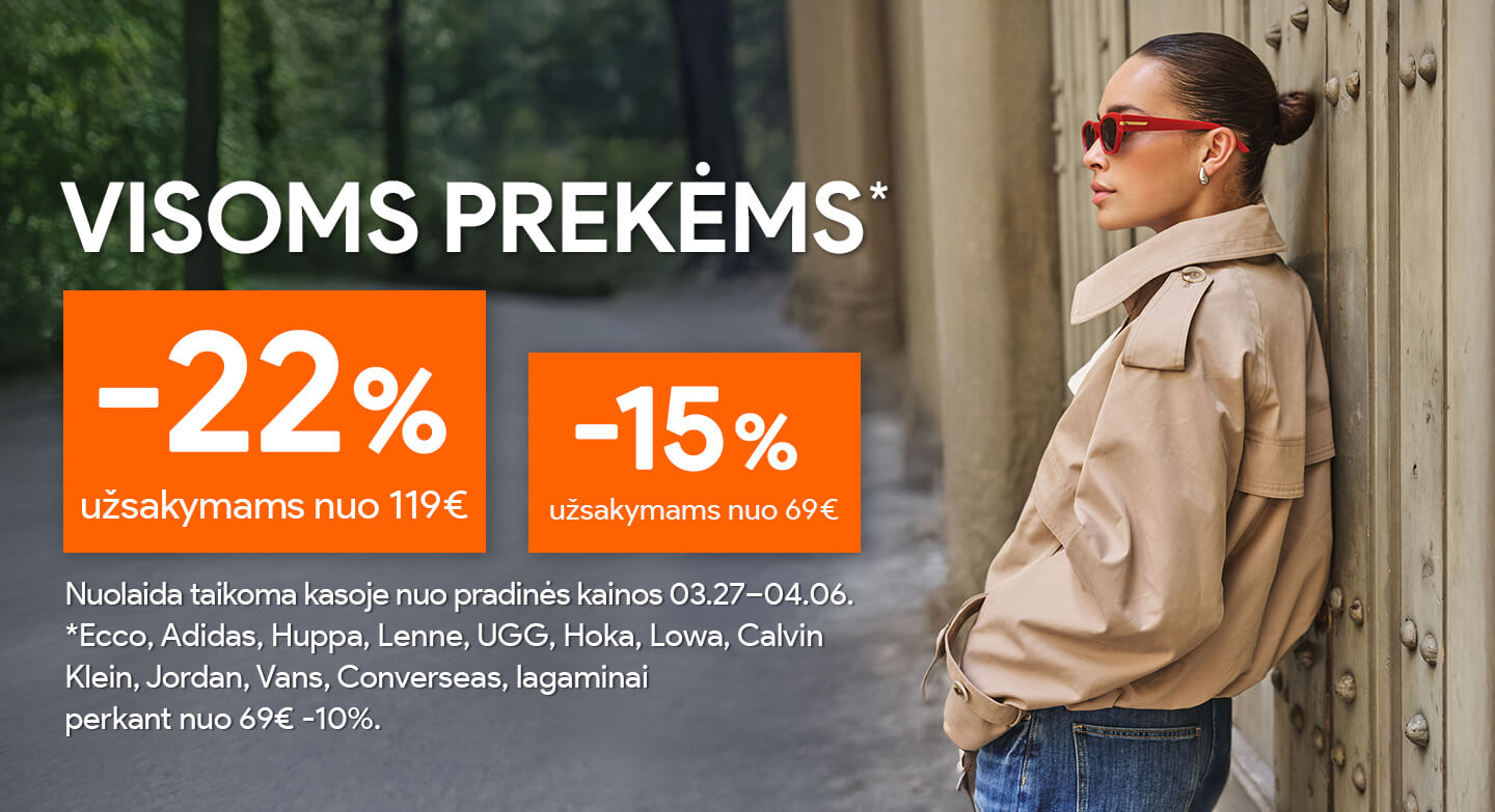 Pirk daugiau, mokėk mažiau! Šiandien VISOMS PREKĖMS -25% perkant nuo 99€ ir -20% nuo 69€!