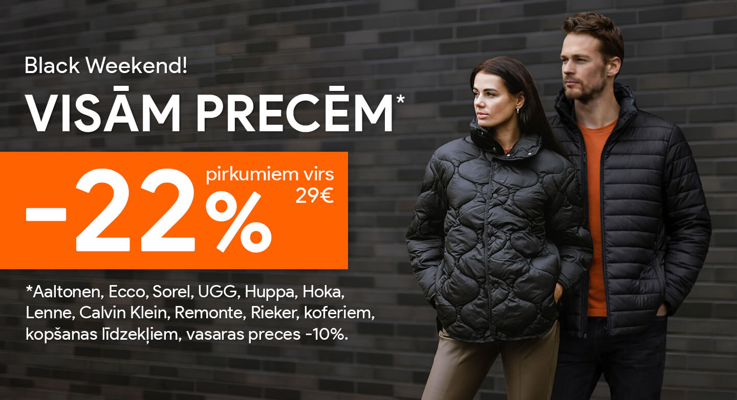 Pērc vairāk, maksā mazāk! Šodien VISĀM PRECĒM -20% pirkumiem no €99, -15% pirkumiem no €69!