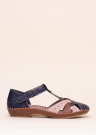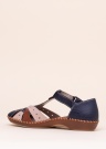 Įspūdingi ir patogūs „Rieker“ batai – puiki vasaros sezono avalynė. Uždara pirštų dalis turi įvairiaspalvius, akį traukiančius dirželius, o kulnas papuoštas įspaustu prekės ženklo logotipu. Koją apjuosia ir patogiai sulaiko „Velcro“ užsegimas. Vidų dengia natūralios ir dirbtinės odos derinys, o vidpadis užtikrina neprilygstamą amortizaciją. Dekoratyvinės siūlės puošia padą, o tankus raštas gerai priglunda prie žemės. 39 dydžio batas sveria 169 g. Spalva: tamsiai mėlyna / smėlio spalva.