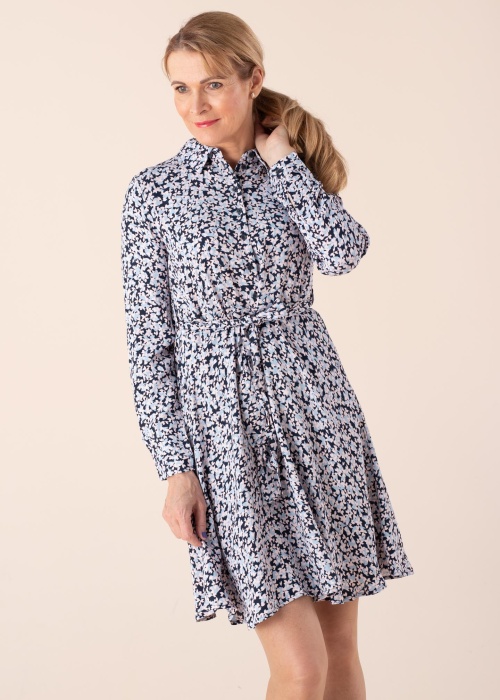„Selected Femme“ suknelė „Fiola“ – puikus pasirinkimas pavasario sezonui ar vasarai. Siuvinėta viršutinė suknelės dalis, klasikinė apykaklė, sagų užsegimas priekyje ir medžiaginis diržas. Viso ilgio rankovės su užsegimais rankogaliuose. Minkštas audinys ir platesnė sijono dalis. Modelis yra 178 cm ūgio ir dėvi 36 dydį.