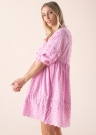 „Selected Femme“ suknelė „Minja“ su ryškiu faktūriniu raštu sukurta vasaros sezonui, kad išsiskirtų iš pilkos minios! Stačią apykaklę papildo „V“ formos iškirptė, o 3/4 ilgio rankovės yra su elastingais rankogaliais. Bangelėmis puoštas apatinis suknelės kraštas sukuria firminę suknelės formą, o medvilninis audinys, kuriuo išklotas suknelės vidus, leidžia jai geriau priglusti ir suteikia drabužiui maksimalų komfortą. Modelis yra 177 cm ūgio ir dėvi 36 dydžio drabužius. Šio dydžio suknelės ilgis nuo viršaus iki apatinio krašto yra 94,5 cm.