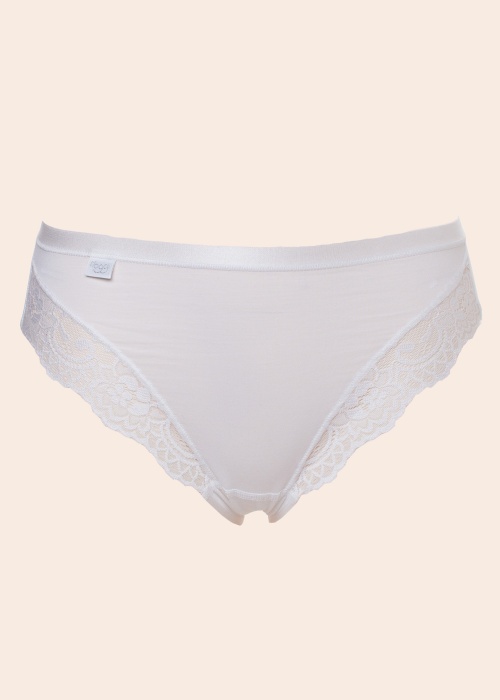 Klasikinio kirpimo ir iš minkštos medvilnės pasiūtos „Sloggi“ kelnaitės papuoštos žavingais nėriniais. Minkštas audinys ir patogios siūlės nevaržo, nespaudžia ir suteikia reikiamą komfortą.Sudėtis: poliamidas 47 %, medvilnė 44 % , elastanas 9 %.Spalva: balta.