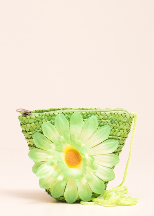 Graži ir mergaitiška Sprox rankinė su nuostabaus efekto gėle yra šauni ir pagamintas iš vytelių. Ji atidaroma su užtrauktuku viršuje ir turi ploną virvelinę petnešą. Matmenys: aukštis 12,5 cm, plotis nuo plačiausio taško yra 15 cm, dugno plotis 7 cm. Spalva: žalia
