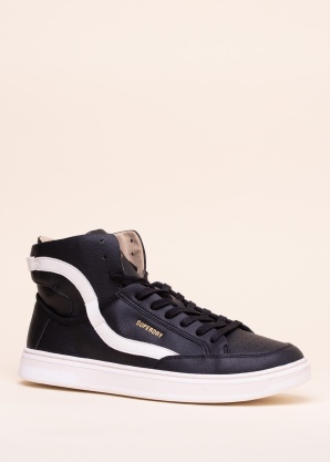 Jaunatviškai atrodantys SuperDry teniso bateliai yra pagaminti iš patvarios dirbtinės odos, kurią iliustruoja kontrastinga linija iš išorės į vidų ir paaukštintas aulas. Klasikinis užrišimas batraiščiais. Patvari dirbtine oda viduje, kuri taip pat padengia nuimamą vidpadį. Guminį padą rekomenduojame padengti bičių vašku, kad vanduo nepatektų į vidų. 46 dydžio batų svoris yra 545 g. Spalva: juoda.