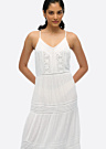 SuperDry moteriška suknelė yra puikus pasirinkimas vasaros dienoms, kai norisi jaustis patogiai ir stilingai. Ši vienspalvė suknelė su petnešėlėmis yra pagaminta iš minkštos ir malonios medžiagos, kuri leidžia odai kvėpuoti ir suteikia komforto pojūtį. Suknelės dizainą puošia subtili nėriniuota perforacija, kuri suteikia skaidrumo ir elegancijos, todėl ji puikiai tinka tiek kasdienai, tiek ypatingoms progoms.