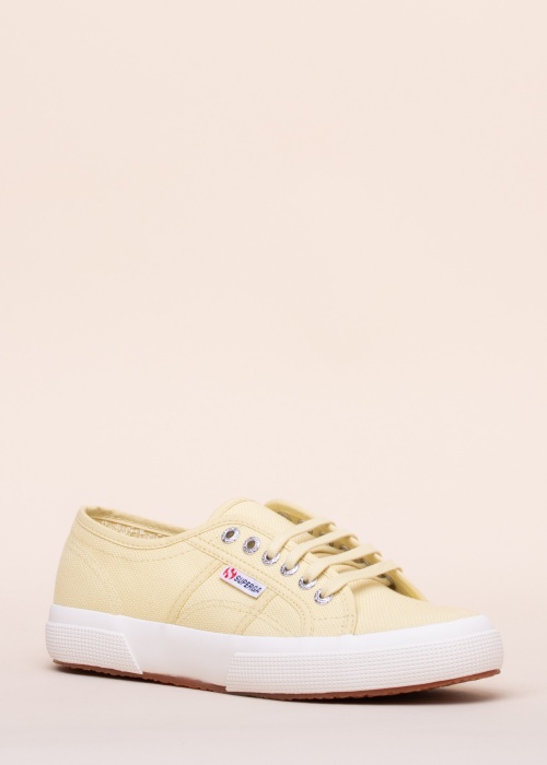 Superga sportbačiai pagaminti iš lengvos tekstilės ir idealiai tinka avėti kasdien. Raišteliai suteikia komfortą reguliuojant batų įtempimą. Išorėje mažesnis prekės ženklo logotipas. Vidinis paviršius pagamintas iš prisitaikančios tekstilės, kuri užtikrina patogų dėvėjimą. Vidpadis patogus ant kojos, o padas guminis, todėl puikiai priglunda prie paviršių. Platformos aukštis 3 cm. 39 dydžio batas sveria 406 g. Spalva: geltona.