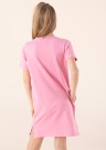 „Tommy Hilfiger“ marškinėlių stiliaus suknelė pasiūta iš ekologiškos medvilnės, todėl yra odai draugiškas ir patogus kasdienis drabužis. Vasariškas spalvų derinys yra gaivus ir madingas bei patiks kiekvienai merginai! Minkštas ir švelnus audinys nedirgina odos ir nesukelia diskomforto. Priekyje – ryškus prekės ženklo logotipas. Suapvalinta ir patogiai apdorota kaklo iškirptė, trumpos rankovės ir šonuose esantys skeltukai suteikia patogumą net aktyviau judant. Ant kairės rankovės išsiuvinėtas nedidelis vėliavos logotipas. Priekyje yra dvi atviros kišenės. Minkštas ir elastingas audinys yra tikrai jaukus ir patogus. Žaviai aprangai sukurti kuo puikiausiai prie šios suknelės tinka stilingi sandalai ar sportinio stiliaus bateliai. Modelis yra 146 cm ūgio ir dėvi 152 dydį. Suknelės ilgis nuo apykaklės iki apatinio krašto – 75 cm.Sudėtis: 95 % ekologiška medvilnė, 5 % elastanas. Spalva: rožinė.