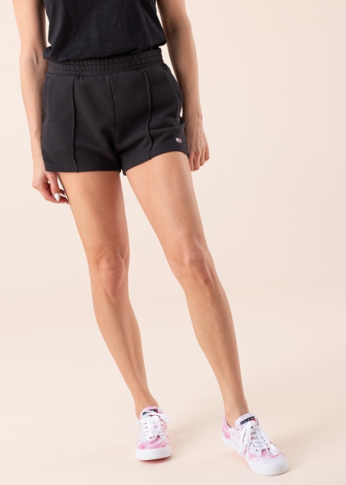 „Tommy Jeans“ šortai skirti aktyviam ir patogiam laisvalaikiui arba poilsiui. Jie pasiūti iš minkšto trikotažinio audinio, kuris yra švelniai elastingas. Tamprus juosmuo maloniai priglunda prie kūno, o šonuose yra atviros kišenės. Nugaroje – papildoma atvira kišenė, o ant kairės klešnės išsiuvinėtas vėliavos logotipas. Modelis yra 176 cm ūgio ir dėvi S dydžio šortus.