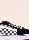 Stilingi „Vans“teniso bateliai yra pagaminti iš zomšos ir tekstilės. Avalynės batviršį puošia prekės ženklui būdingos detalės bei žaismingas langelių raštas.Batų vidus yra pagamintas iš tekstilės, o atminties putų vidpadis yra paminkštintas. Guminis padas yra lankstus ir patikimai sukimba su įvairiais paviršiais.46 dydžio bato svoris yra 474 g. Spalva: juoda / balta.