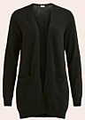 Prekės ženklo „Vila“ kardiganas priekyje neturi užsegimo, o jo šonuose yra atviros kišenės. Šį minkštą, gražų kardiganą galima dėvėti net kiekvieną dieną. Jis visada apgaubs šiluma ir leis jaustis patogiai bei jaukiai. Modelis yra 178 cm ūgio ir dėvi S dydį, kurio ilgis yra 79,5 cm. Sudėtis: viskozė 50%, nailonas 27%, poliesteris 23%. Spalva: juoda.